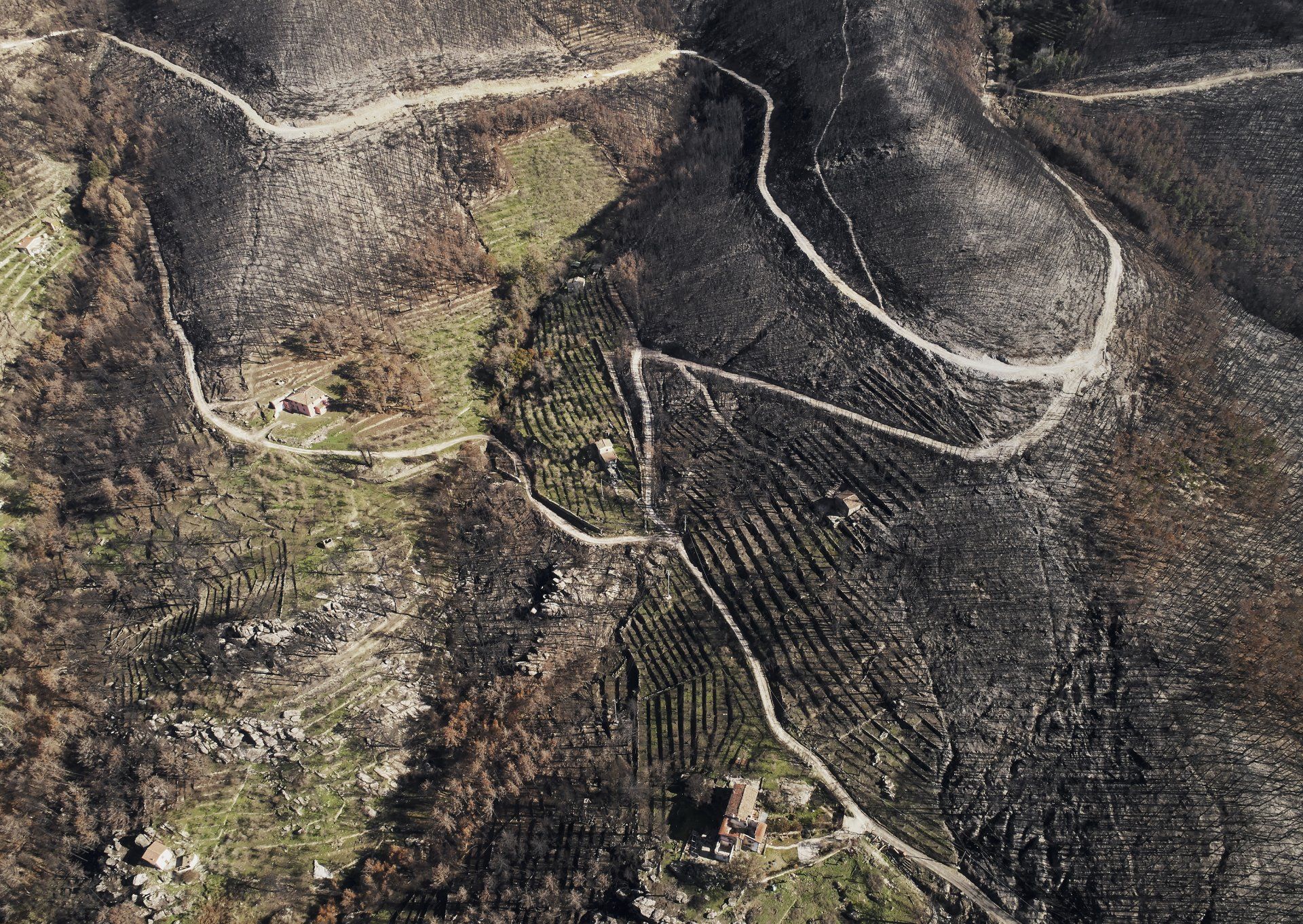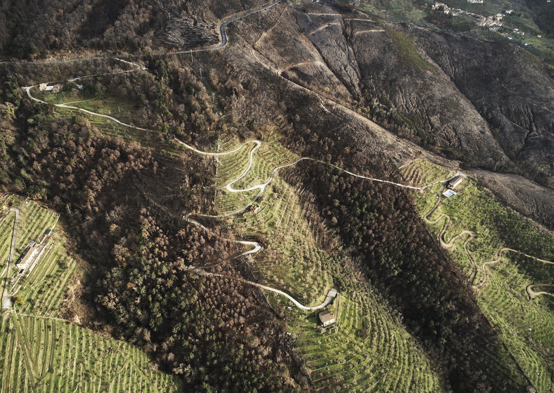 Il Progetto, in tutte le sue sfaccettature e nelle sue varie direzioni documentative e narrative, ci parla e ci trafigge mostrandoci la devastazione generata dal fuoco, la trasformazione dei luoghi, la prossimità del fuoco alle abitazioni e ai luoghi del cuore, lo sgomento e l’attaccamento dei suoi abitanti, il grande gioco di squadra che la popolazione e le amministrazioni sono riuscite ad operare, le grandi energie umane dedicateli, i massicci interventi di messa in sicurezza e bonifica eseguiti, gli inaspettati terrazzamenti una volta preziosi e persi nelle memorie delle generazioni passate fino ad ora seppelliti sotto la folta vegetazione, che oggi si mostrano e ci raccontano la storia; ed infine la forza della natura che con i suoi colori ci insegna che domani è un altro giorno: il giorno buono per risorgere.